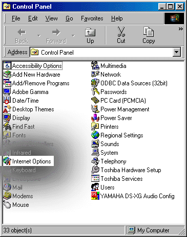 Internet Options Control Panel via MSIE 5 Tools Menu