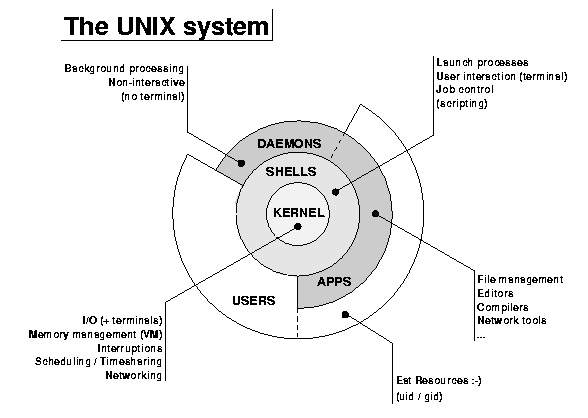 There are 4 main layers to the UNIX system