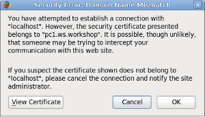 You must now choose one of your virtual hosts that you will use this certifcate for. This is the issue with SSL certificate and name-based hosting we mentioned earlier. There is no way to correctly identify which virtual host belongs to which certificate using name-based virtual hosting.## SSL Virtual Host Context